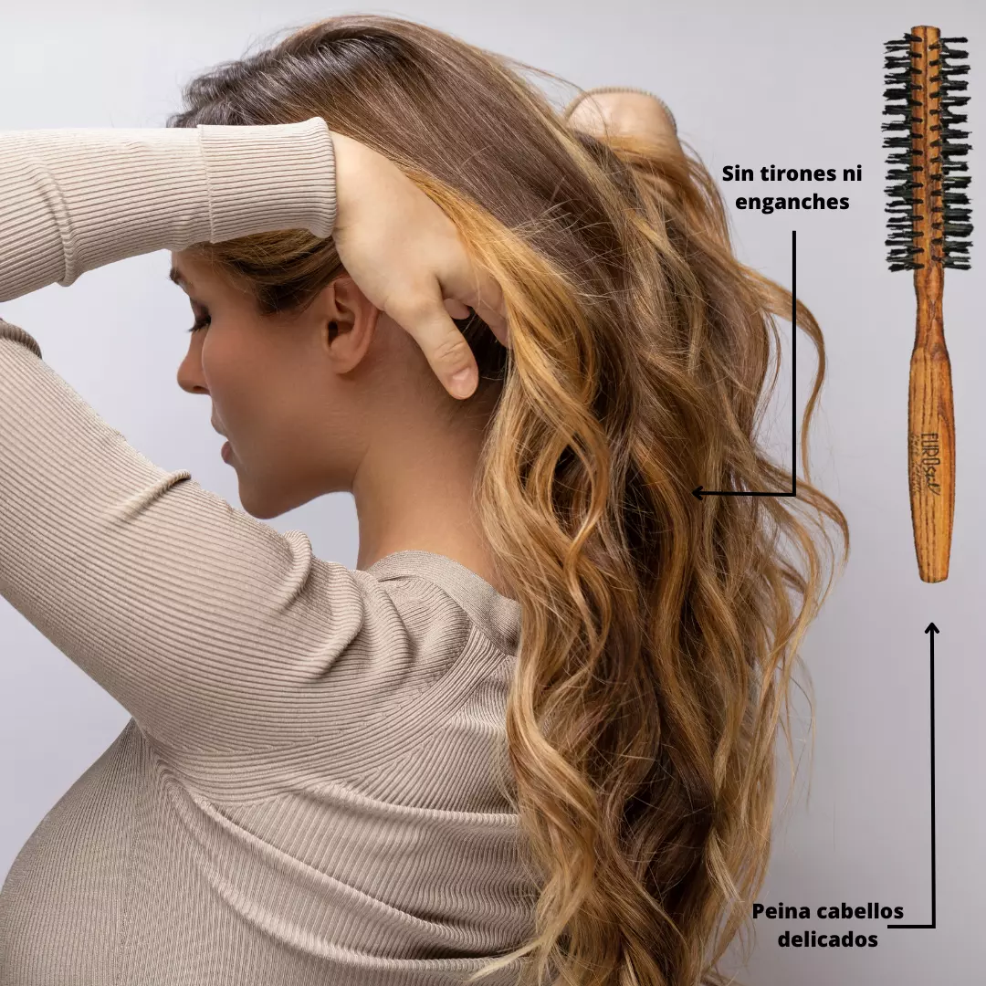 Un cepillo creado con cerdas de jabalí 100%. Para peinar cabellos delicados ya que las cerdas se adaptan suavemente al cabello sin tirones ni enganches.