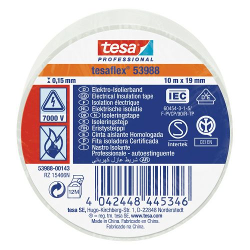 tesa 53988 Cinta Aislante Homologada 10m x 19mm Blanco