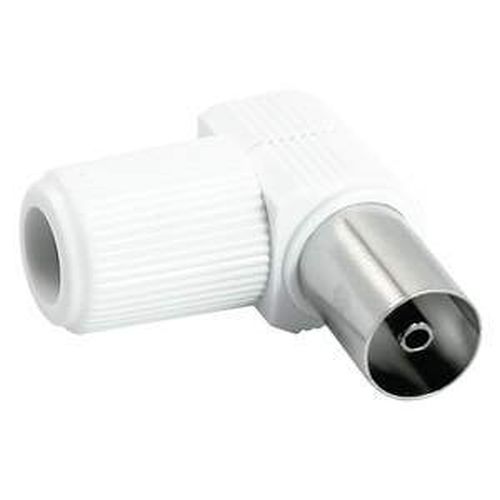 El conector tv 9,5 mm hembra acodado es conveniente para mantener el sistema de cableado en su lugar, evitando interferencias o degradación de la señal. Este conector permite recibir el punto de conexión que surge desde el receptor TDT o el televisor a través del cable coaxial, hasta la base antena de TV que sea macho. Este dispositivo de tipo hembra tiene 9,5 mm de diámetro y viene en forma de codo para proteger la base del cable y para facilitar su instalación. Presentación del producto: Blíster con CONECTOR TV 9,5MM HEMBRA ACODADO color BLANCO.