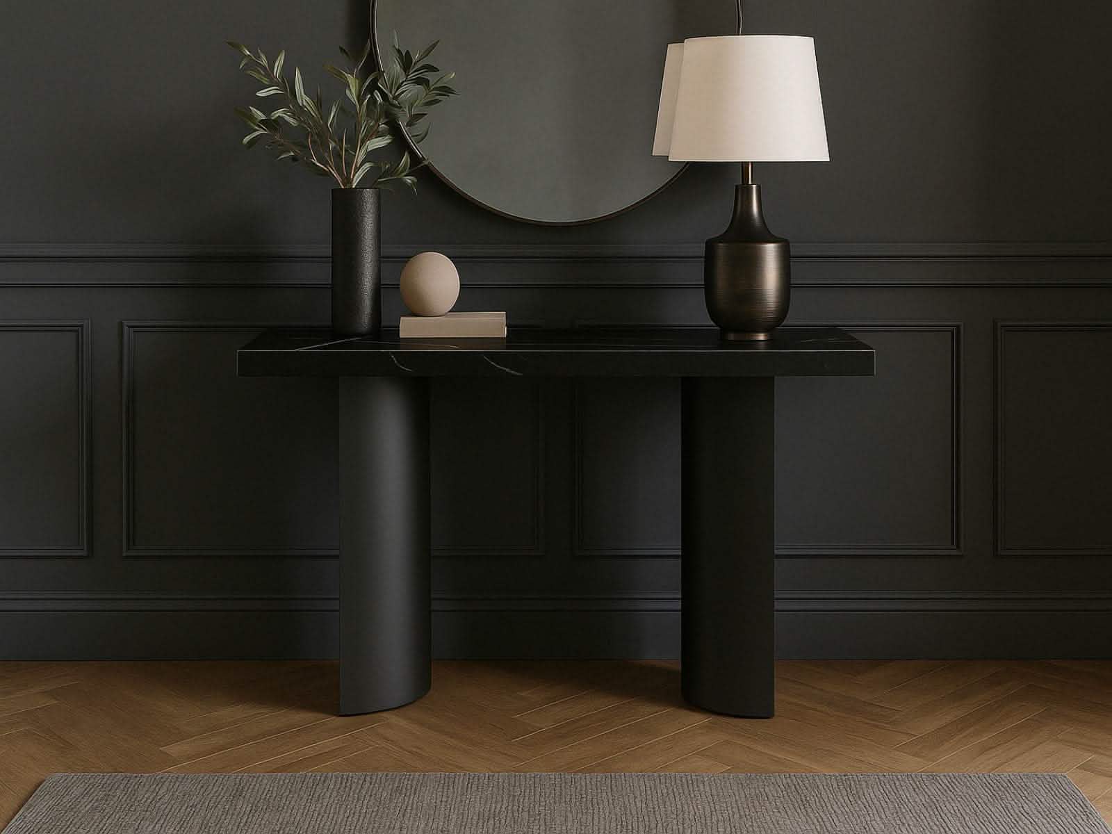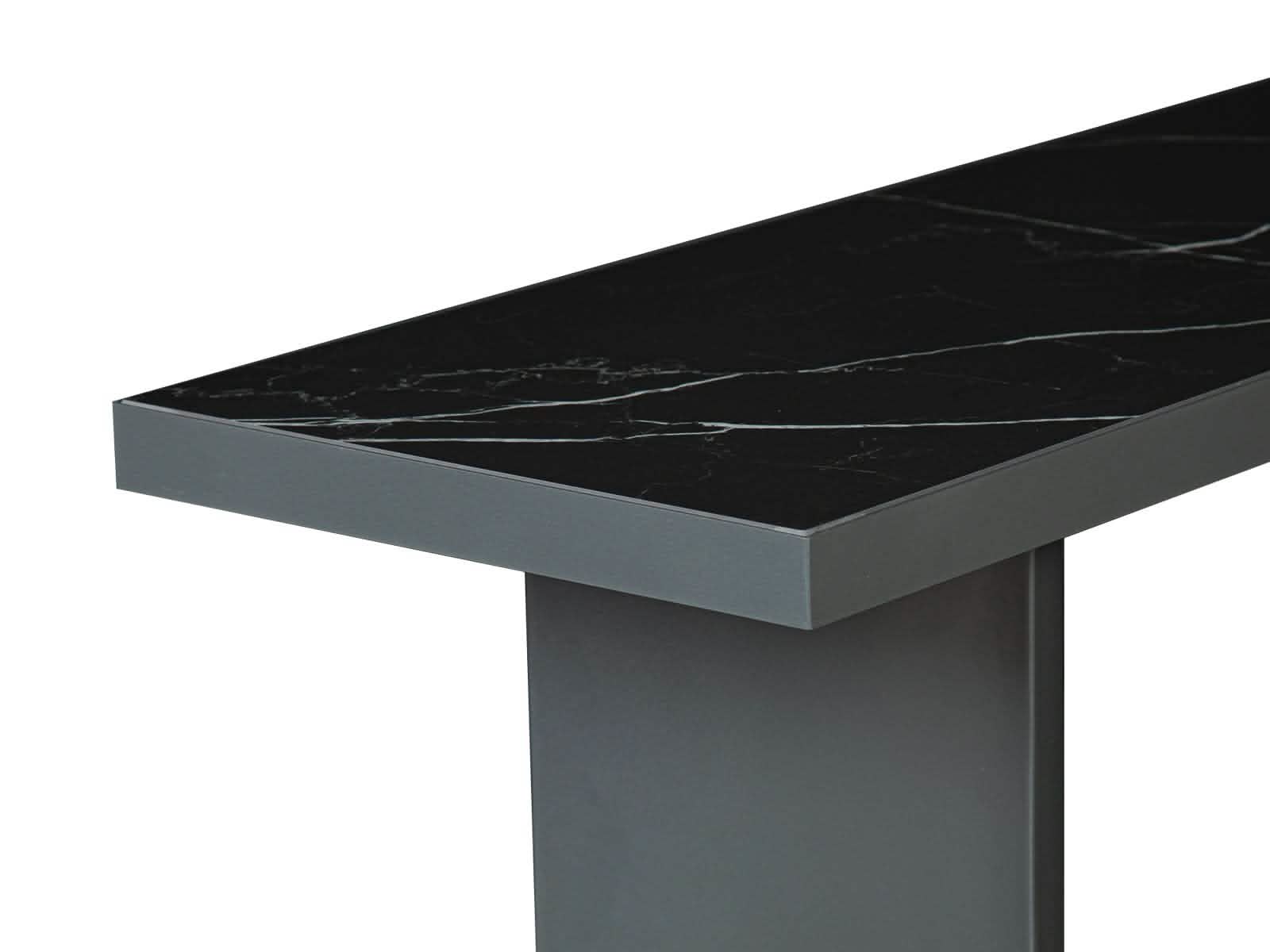 La Consola Petra combina modernidad y sofisticación con su estructura en metal gris oscuro y su elegante cubierta de piedra sinterizada. Un diseño minimalista y resistente que añade un toque de distinción a cualquier espacio. Ideal para realzar la decoración de tu hogar con estilo y funcionalidad.