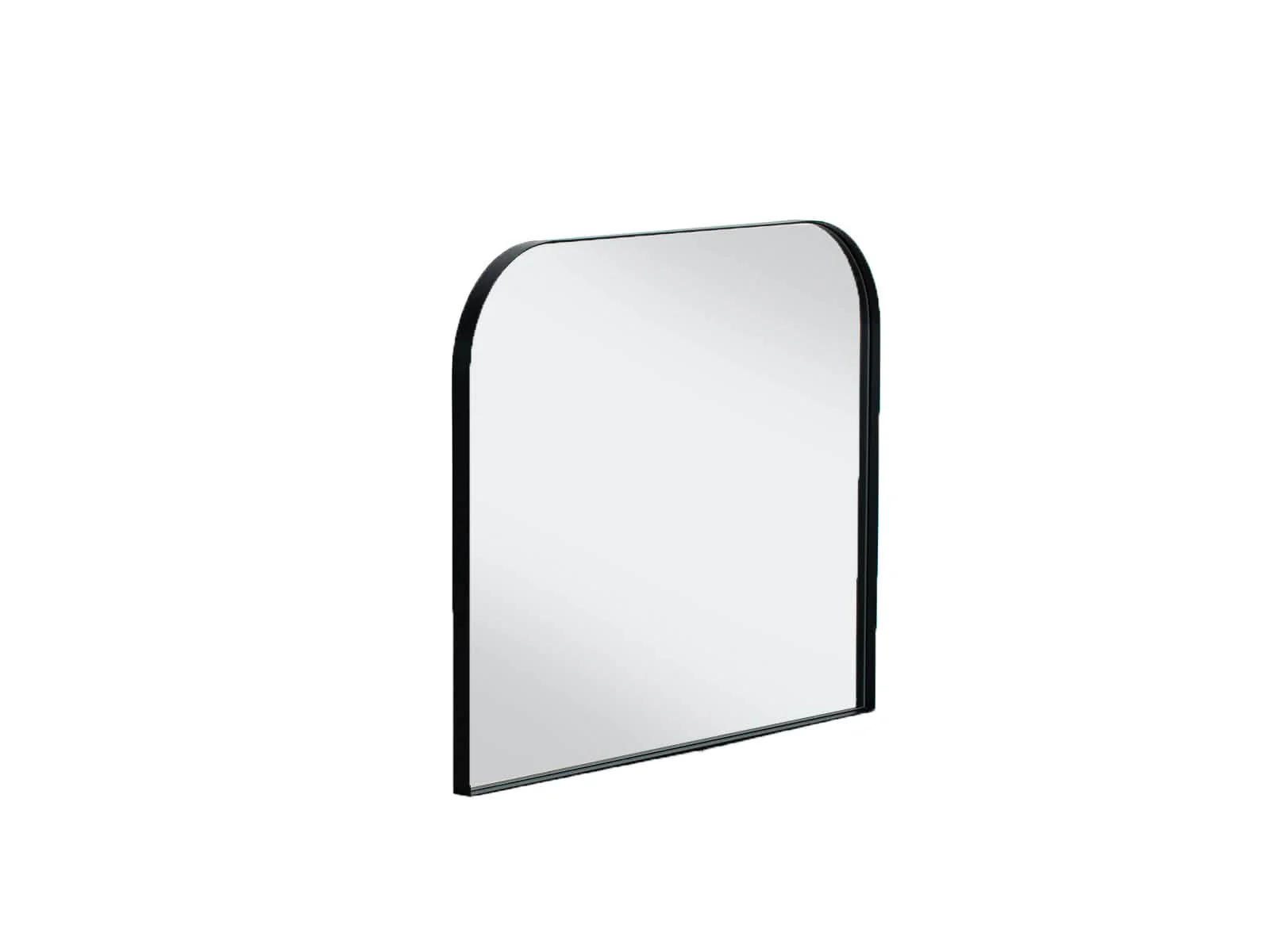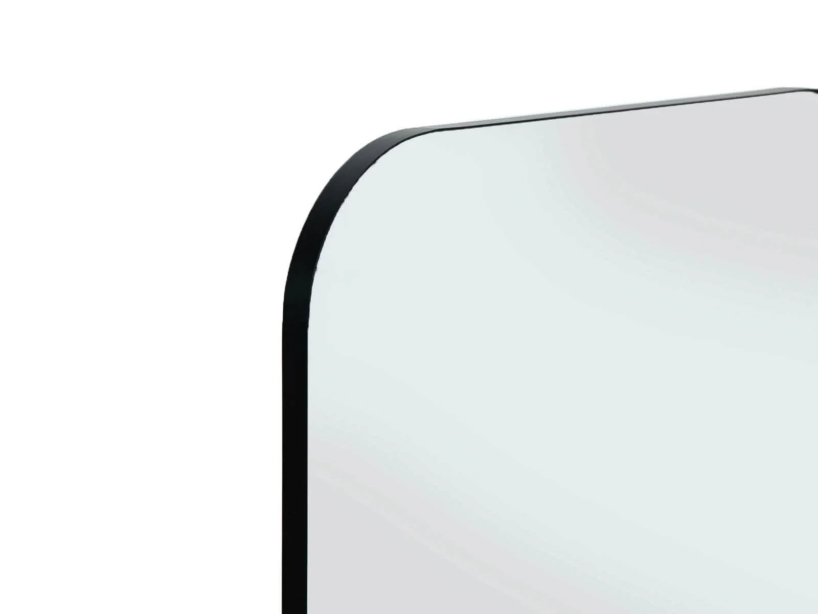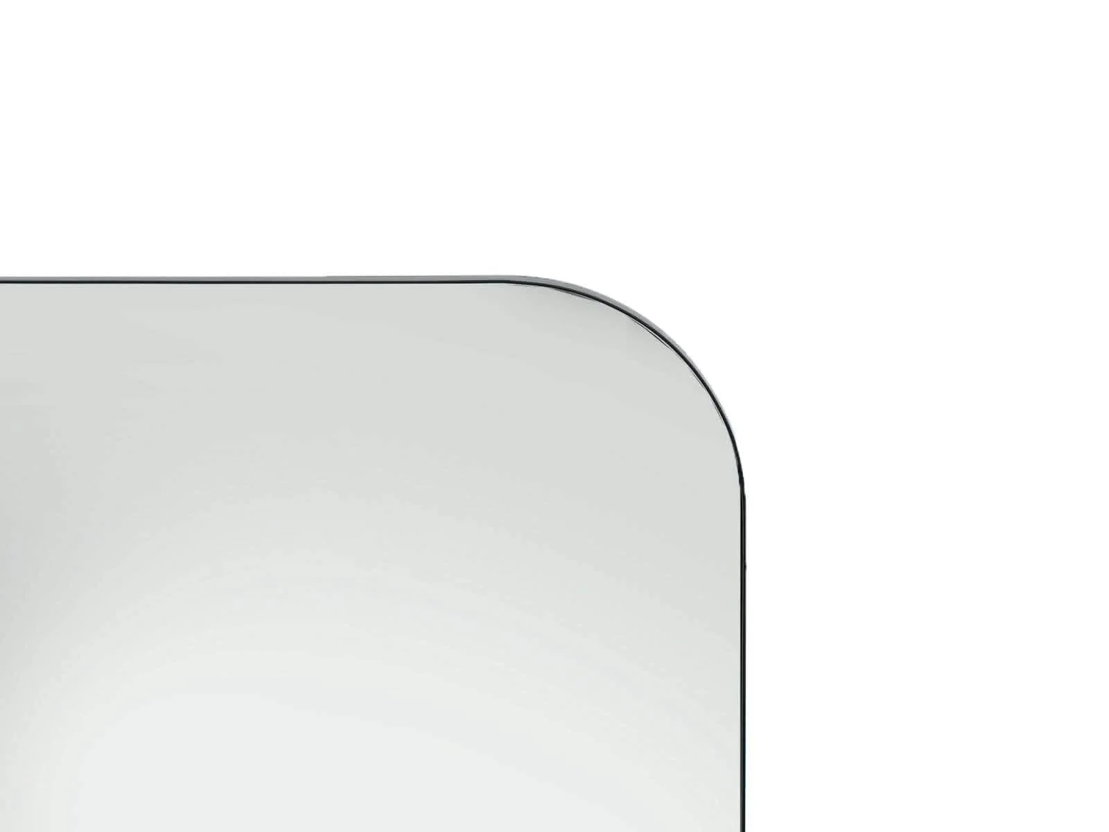 Espejo con diseño rectangular de esquinas arqueadas y un marco de acero negro que aporta elegancia y modernidad. Perfecto para complementar la decoración de cualquier habitación con un estilo contemporáneo.