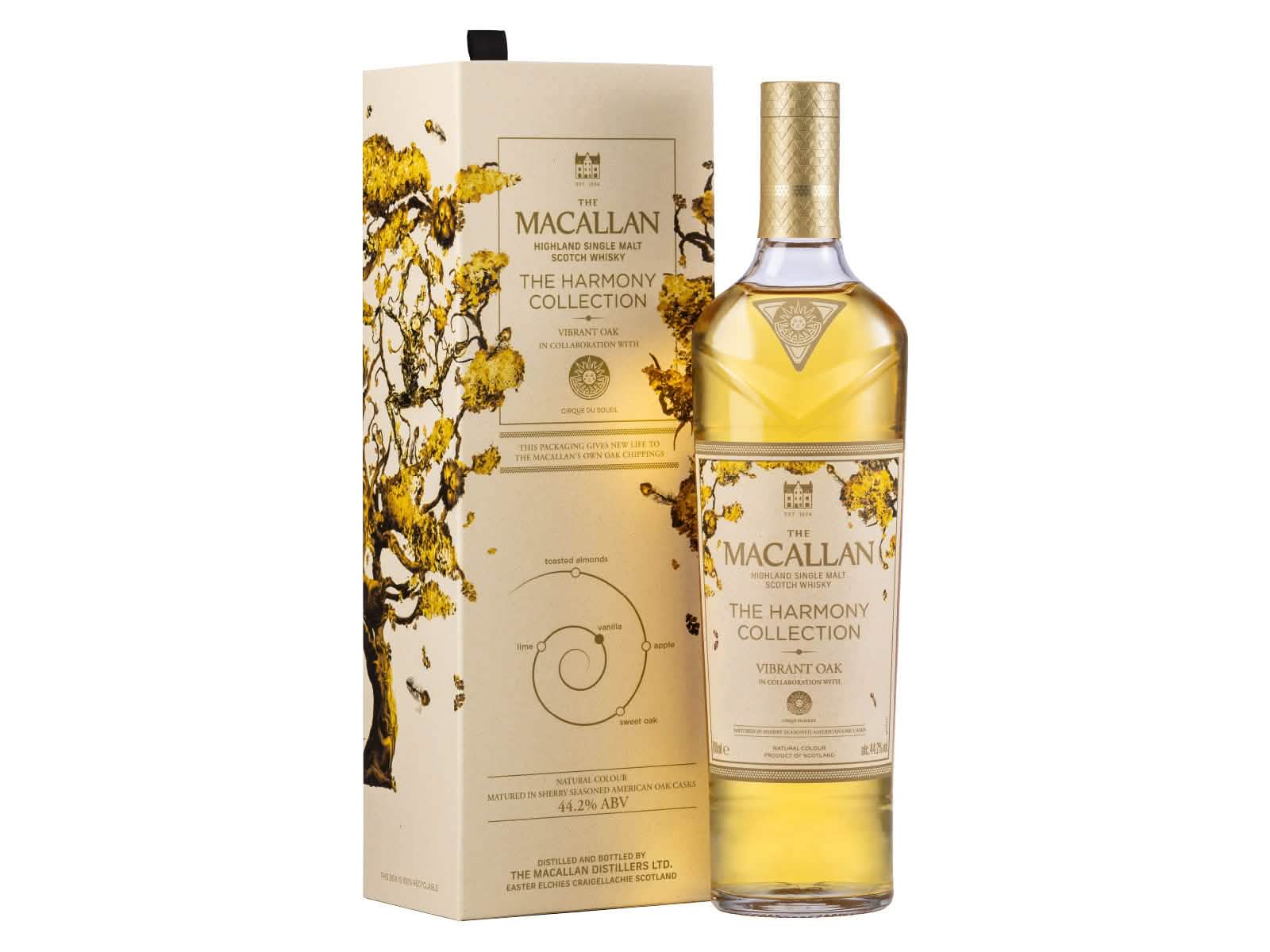 La «Harmony Collection» de Macallan es una serie de lanzamientos anuales limitados que exploran el futuro del empaque de la marca, inspirados en la profunda conexión con la naturaleza. Cada edición presenta un empaque distintivo e innovador que busca dar nueva vida a los subproductos orgánicos al final de su ciclo. Por ejemplo, la edición «Arabica» se enfoca en notas de café, ideal para maridajes con café, mientras que otras ediciones han explorado colaboraciones con artistas o celebran los paisajes escoceses. Los whiskies de esta colección suelen tener aromas de tiramisú, capuchino, pan de jengibre, pasas, almendras, roble dulce y vainilla, con sabores a espresso, chocolate negro, pasas, mora, vainilla y roble.