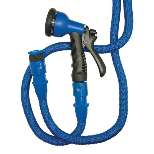 Esta manguera extensible Pro 15 M. Azul. TOP QUALITY. A, incluye además de su adaptador, pistola con funciones y enlaces. Es un producto ideal para regar y cuidar la plantas y flores de tú jardín, incluso también para la limpieza y lavado de algunos muebles, coches, etc. La pistola incluida cuenta con diferentes tipos de chorros y un mango ergonómico que te permite un cómodo agarre. Todos los accesorios son fáciles de reemplazar; es un producto que te garantizará un alto rendimiento. Su manguera dispone de una tecnología única que hace que la misma sea muy ligera y compacta, en comparación con otras.