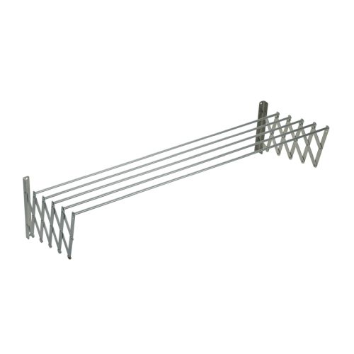 El tendedero extensible de 1.00m está fabricado en aluminio inoxidable, lo que lo hace resistente a la corrosión y duradero. Es ideal para espacios pequeños y se puede extender hasta 1.80m para colgar más ropa. Además, su diseño compacto permite guardarlo fácilmente cuando no se utiliza.
